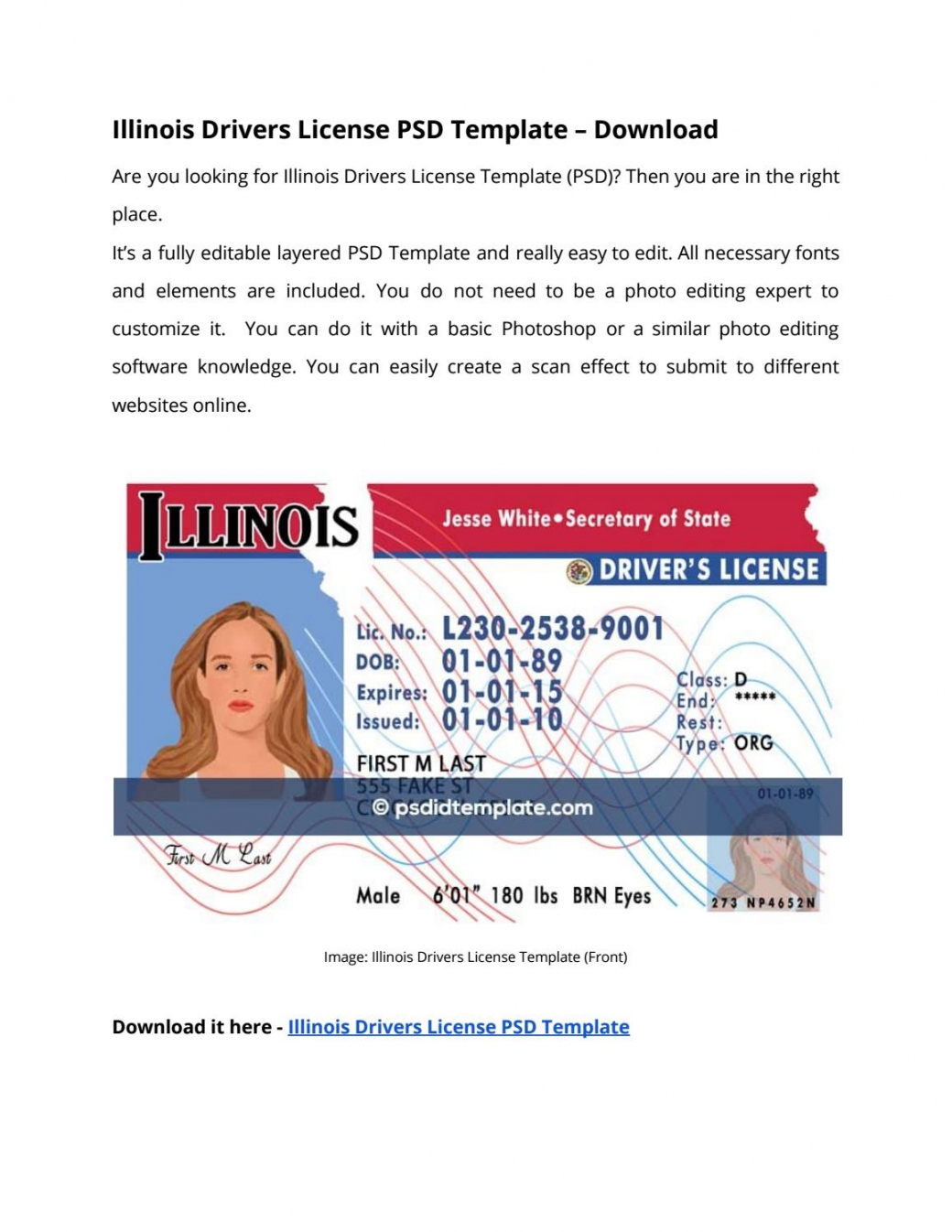 Download and Print Free Printable Blank Illinois Drivers License Template Listed below
