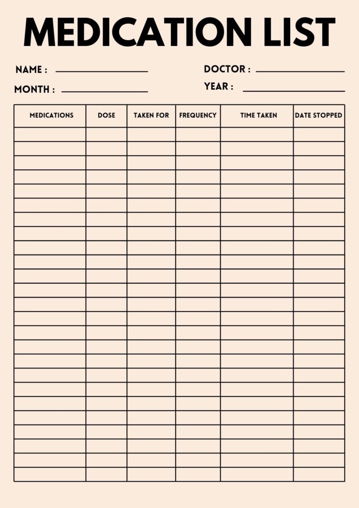 Stay organized, stay healthy, and never miss a dose again with our simple and practical printable list. Get started today and simplify your daily routine effortlessly.