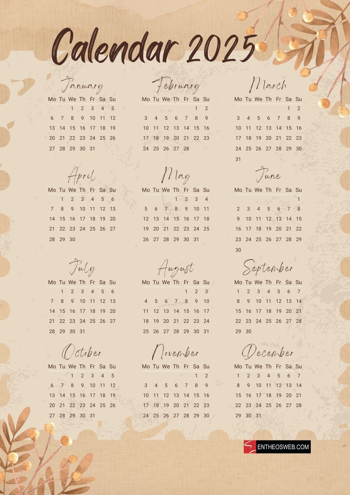 Download and Print Free Printable Calendar 2025 Aesthetic Listed below