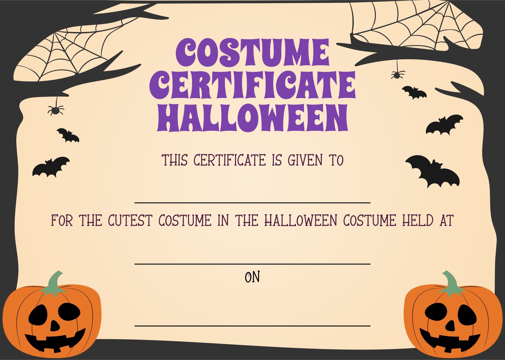 Get creative and have fun designing your own certificates. Your winners will surely appreciate the extra effort you put into making their victory even more special. Download your free printable costume contest certificates today and make your event one to remember!