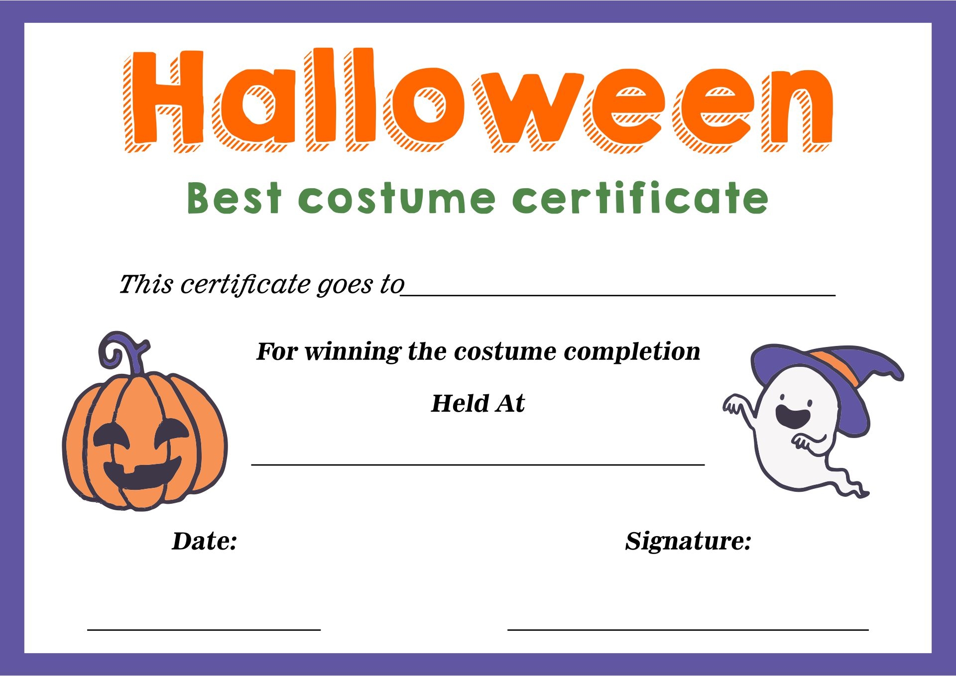 Download and Print Free Printable Costume Contest Certificates Listed below