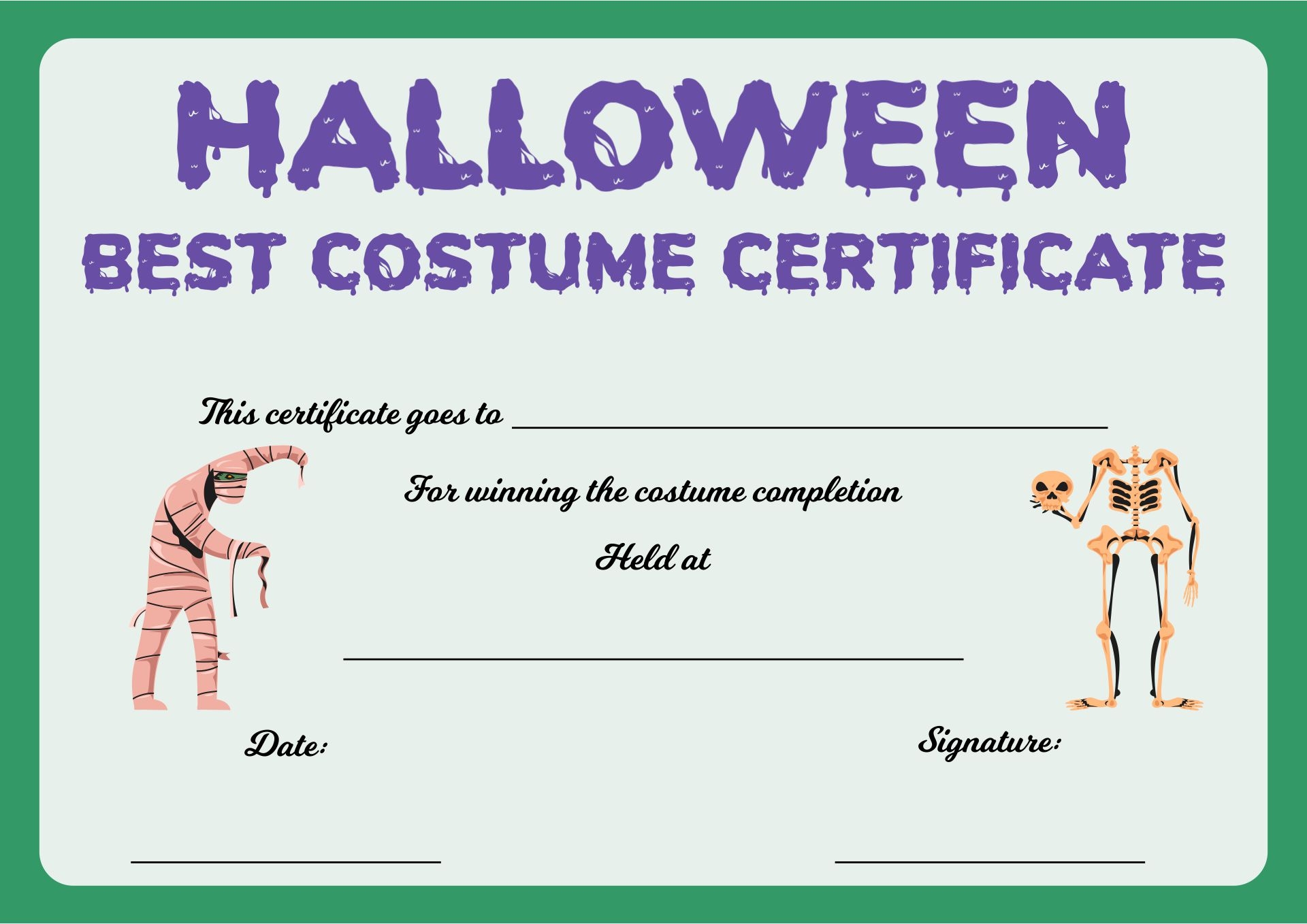 So, why settle for plain old ribbons or trophies when you can award your costume contest winners with a personalized certificate? These free printable certificates are a fun and easy way to make your event even more memorable. Give them a try at your next costume contest!