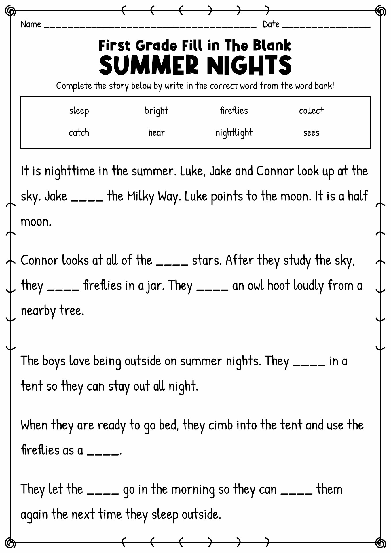 With fill in the blank stories, children can use their creativity to complete sentences and create their own unique tales. This not only enhances their reading comprehension but also encourages them to think critically and express themselves creatively. It’s a great way to make learning fun!