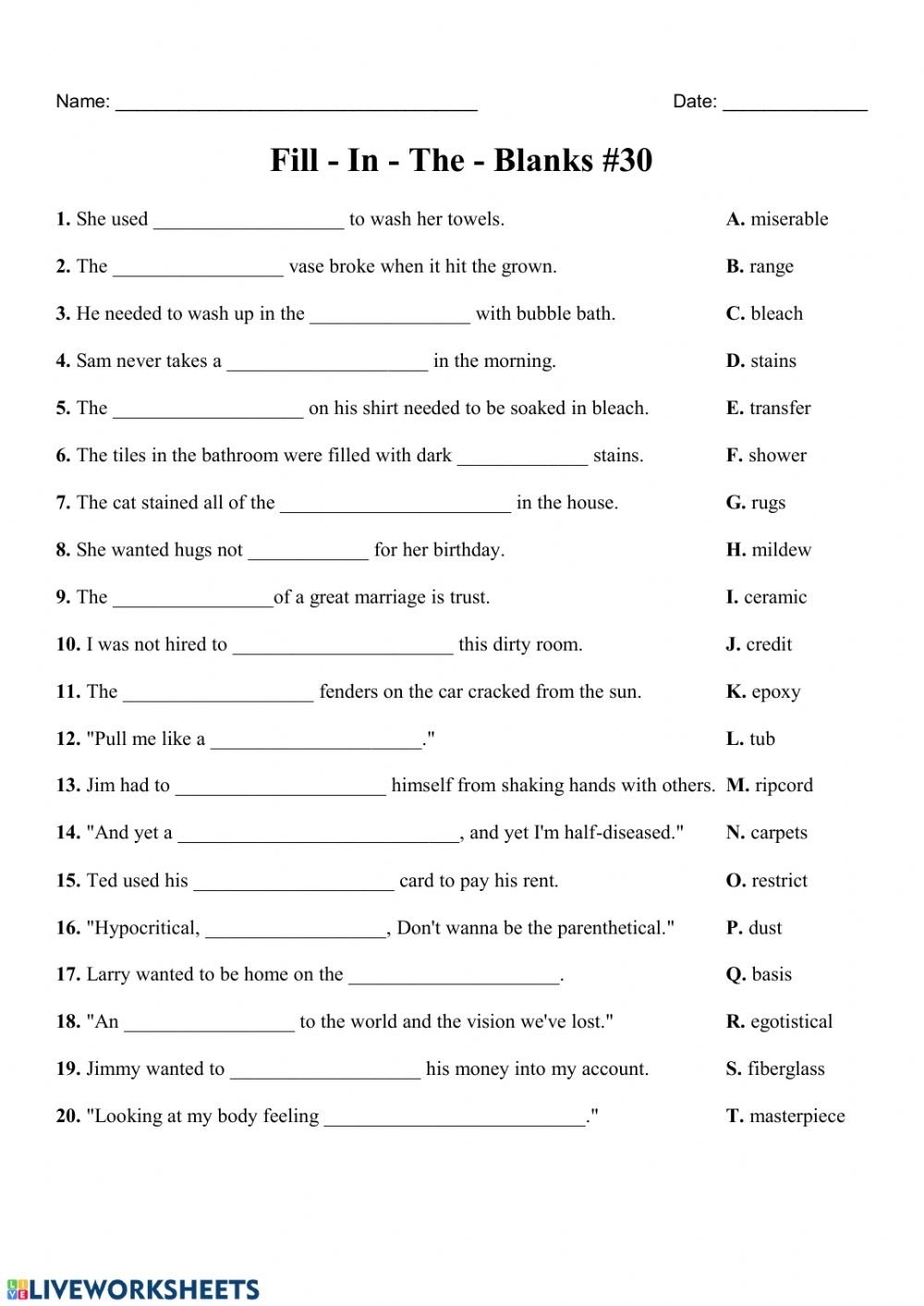 Another benefit of fill in the blanks worksheets is that they encourage active participation and engagement. By prompting learners to complete sentences or passages, these worksheets promote critical thinking and problem-solving skills. Additionally, the interactive nature of fill in the blanks activities makes learning more enjoyable and effective.