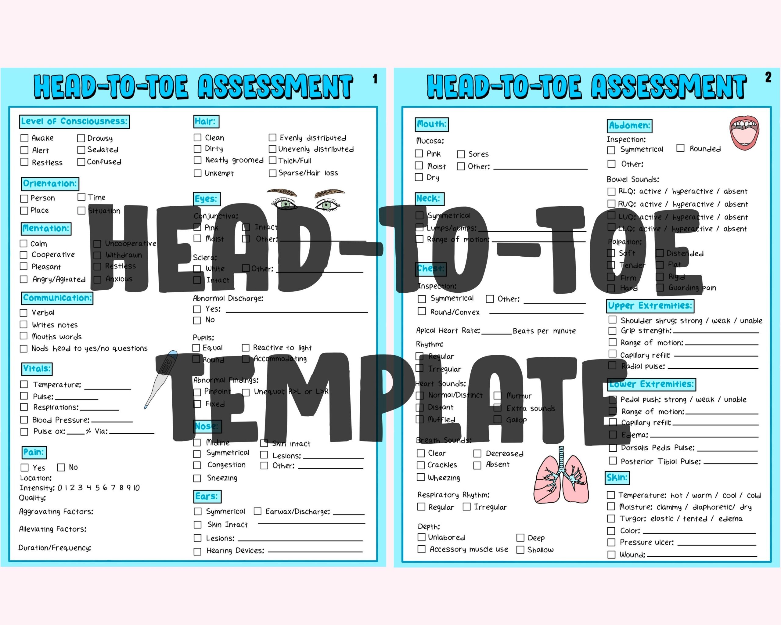 By using our free printable head-to-toe assessment form, you can ensure that no aspect of the patient’s condition is overlooked. This comprehensive tool can help you identify any abnormalities or changes in the patient’s health status, allowing for timely interventions and improved patient outcomes.