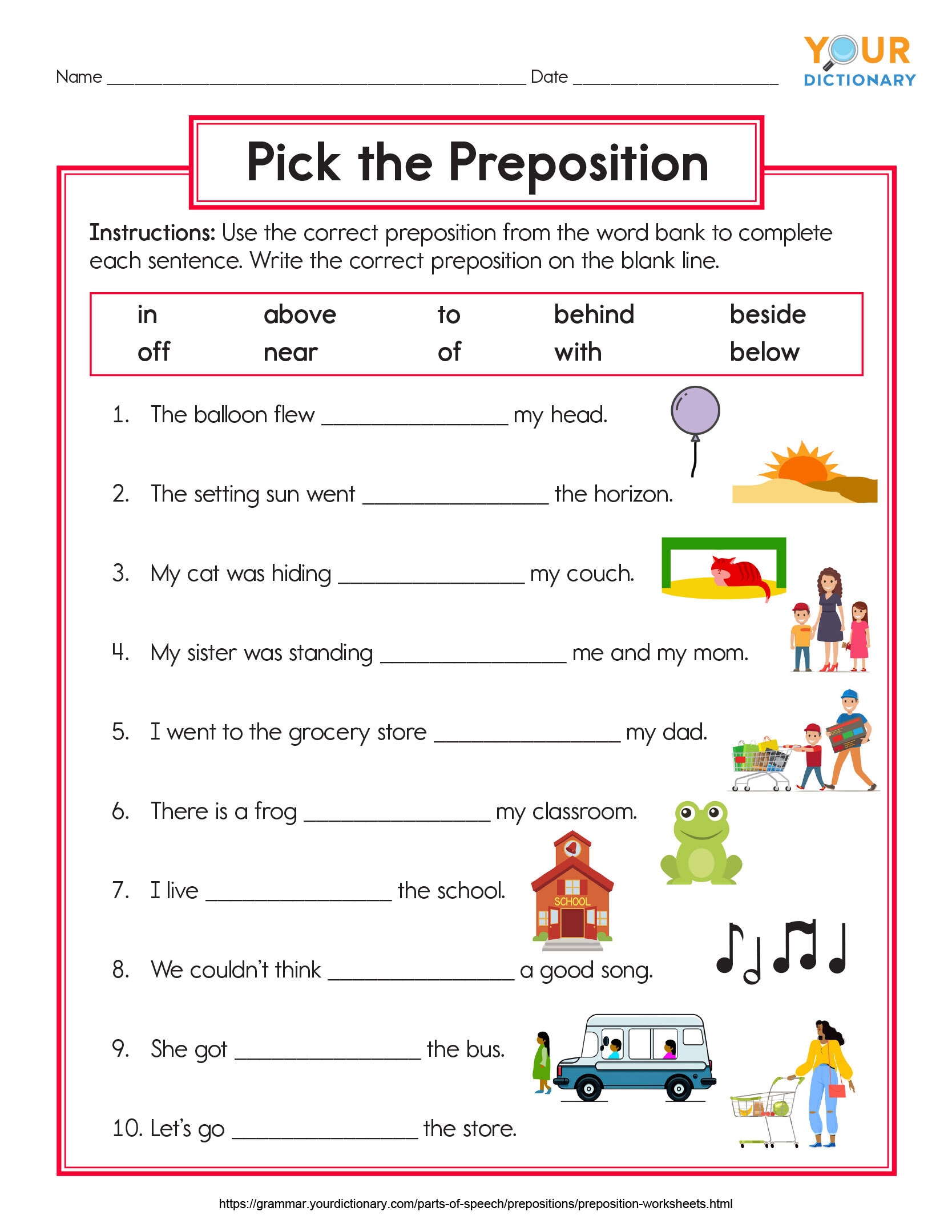 Download and Print Free Printable Preposition Worksheets For Grade 4 Listed below