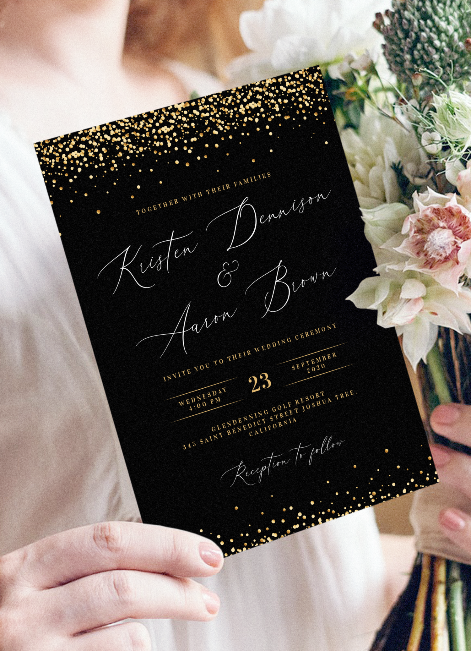 With our user-friendly templates, you can create professional-looking invitations in minutes. The elegant gold and black design is versatile and suitable for a variety of events, making it a convenient option for all your party planning needs.
