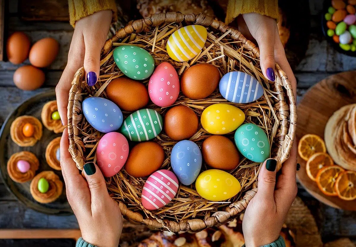On Easter Sunday, Greeks attend church services where the priest blesses baskets of food, including the traditional Easter bread known as “tsoureki.” After the service, families gather to enjoy a festive meal together, exchanging wishes of “Christos Anesti” (Christ is risen) and “Alithos Anesti” (Truly, He is risen).