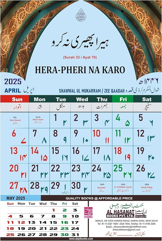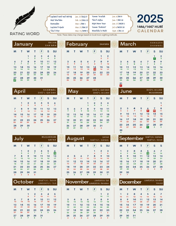 Download and Print Islamic Calendar 2025 With Events Listed below