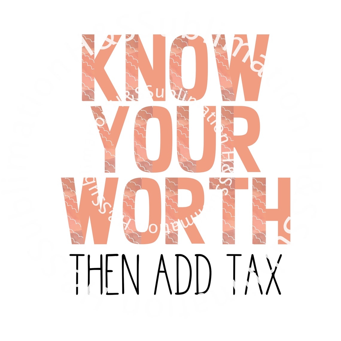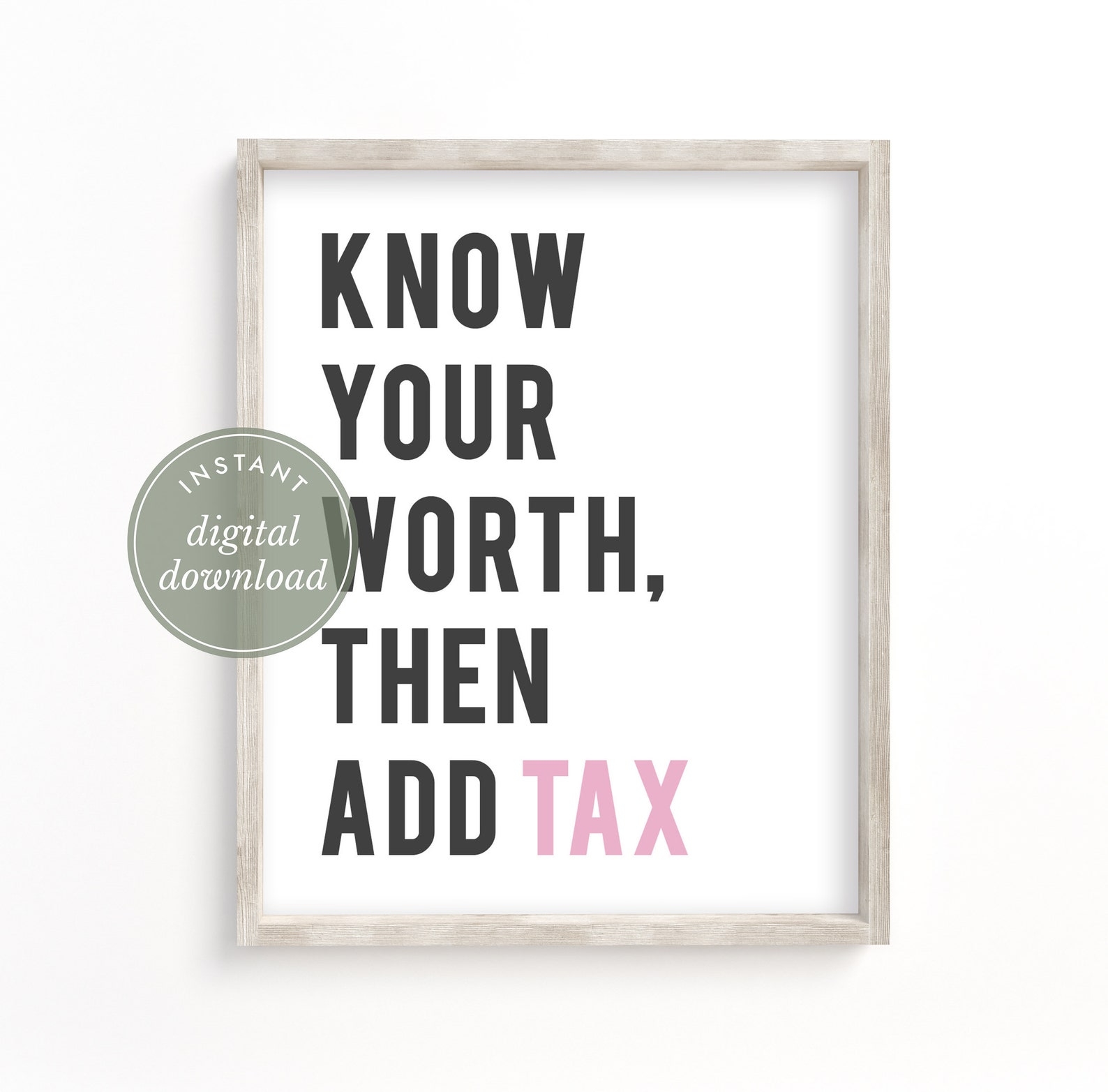 Download and Print Know Your Worth Then Add Tax Free Printable Listed below