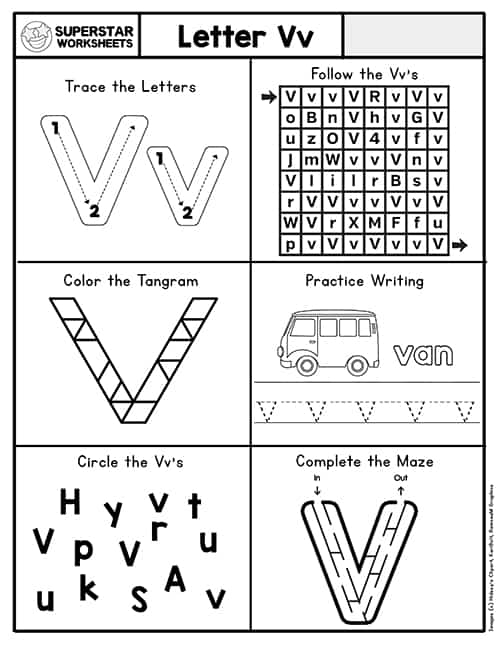 With this worksheet, your child can practice tracing the letter V, coloring in pictures that start with the letter V, and even playing a fun word search game. It’s a great way to reinforce letter recognition and phonics skills in a hands-on way.