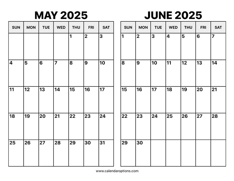 Download and Print May And June 2025 Calendar Listed below