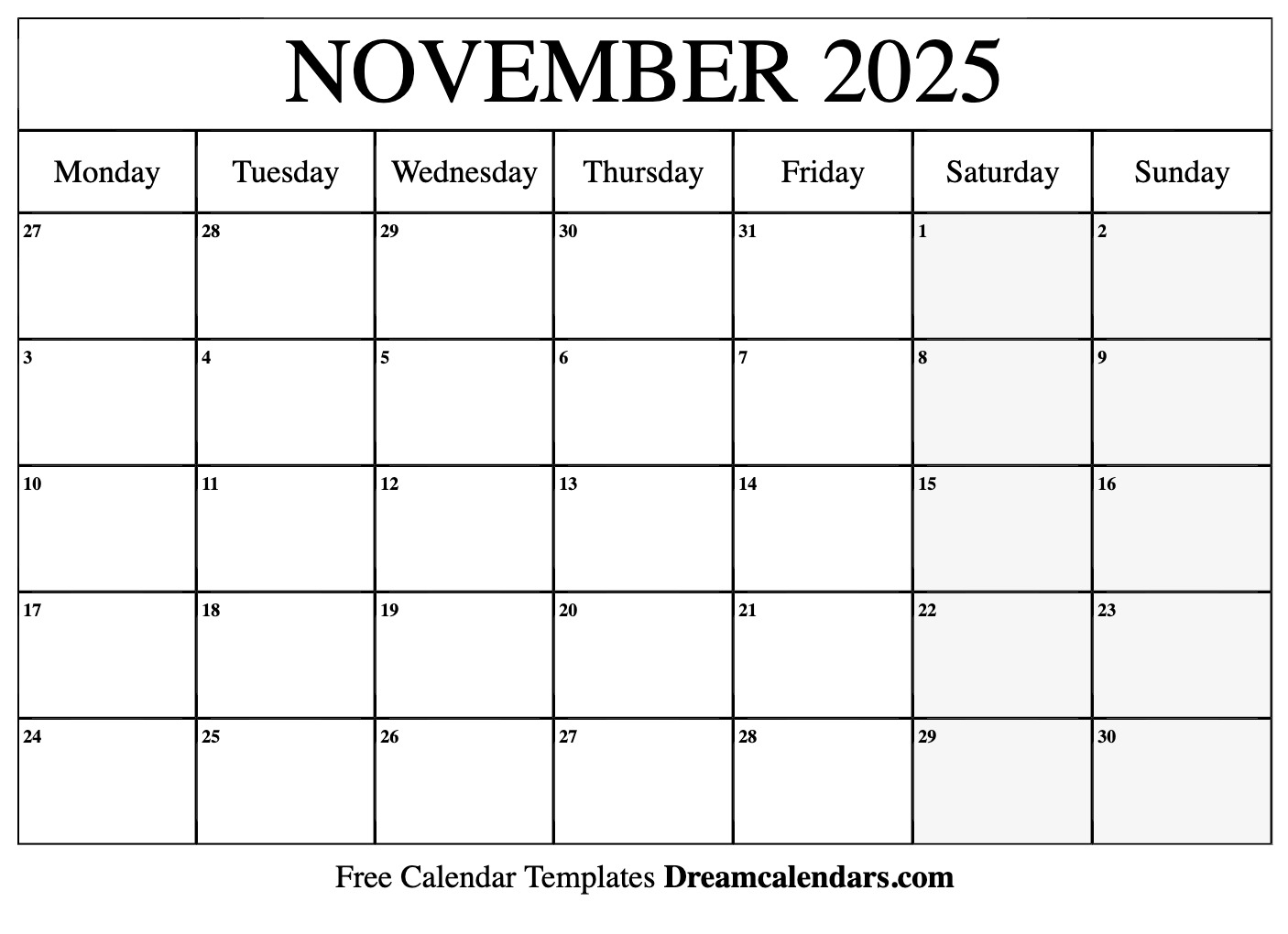 Download and Print Microsoft Blank Calendar November 2025 Printable Listed below