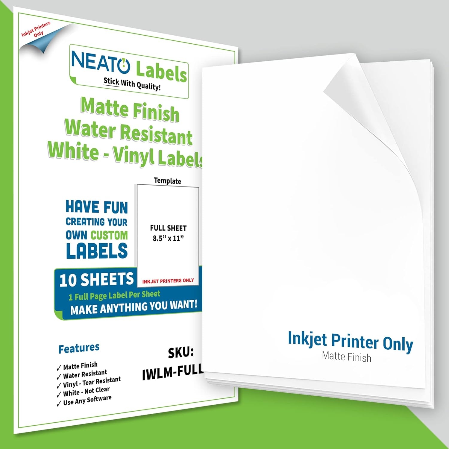 Whether you’re a small business owner, a teacher, or a crafter, Neato Blank White Full Sheet Printable Labels are easy to use and can be printed with any standard inkjet or laser printer. The possibilities are endless!