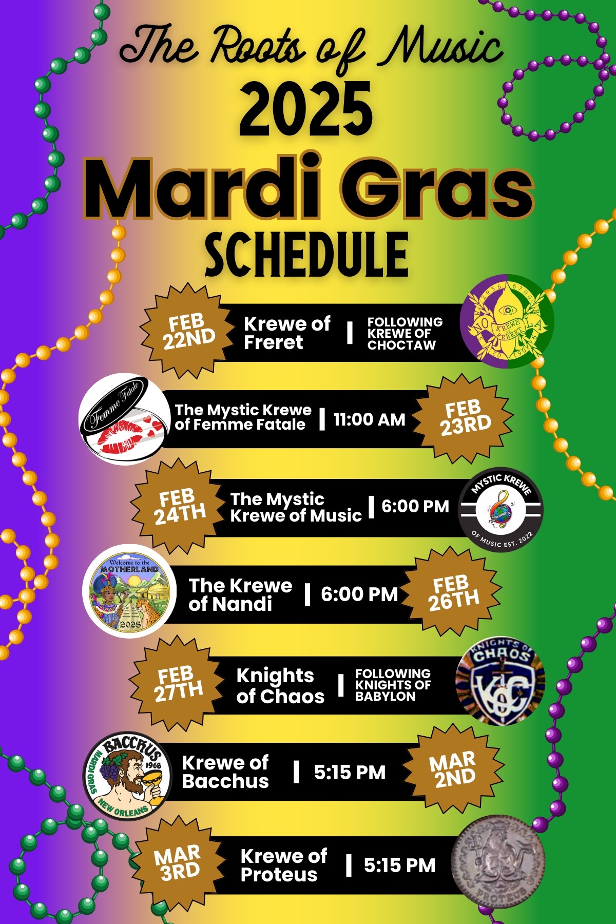 Download and Print New Orleans 2025 Events Calendar Listed below