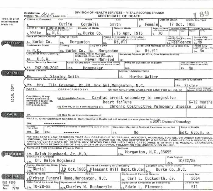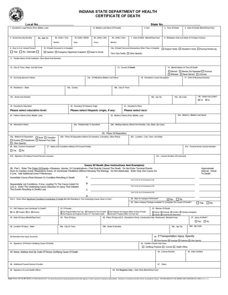 Download and Print North Carolina Printable Blank Death Certificate Listed below