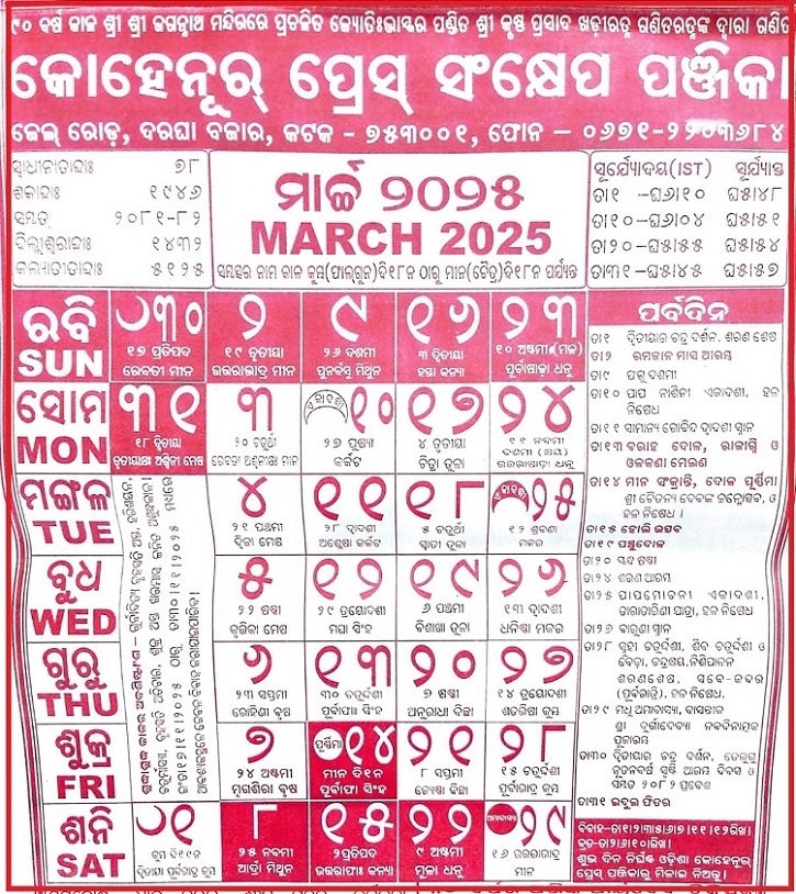Download and Print Odia Calendar 2025 Holi Date Listed below