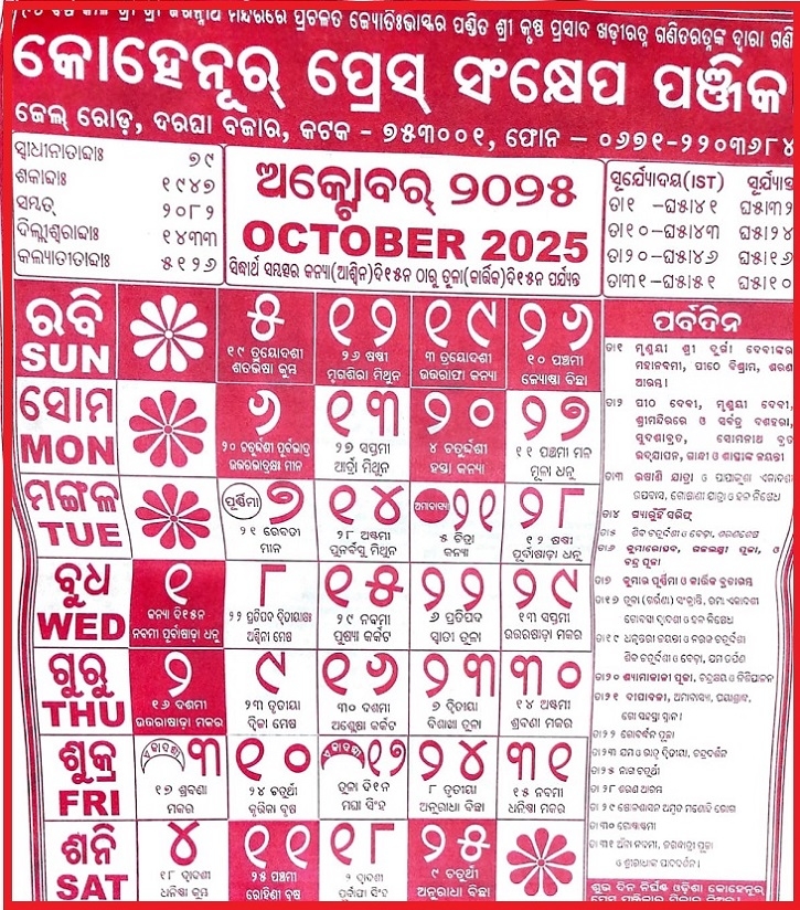 Whether you are a resident of Odisha or simply have an interest in the culture and traditions of this beautiful state, keeping track of the Odia Calendar for November and December 2025 will help you stay connected with the local customs and practices.