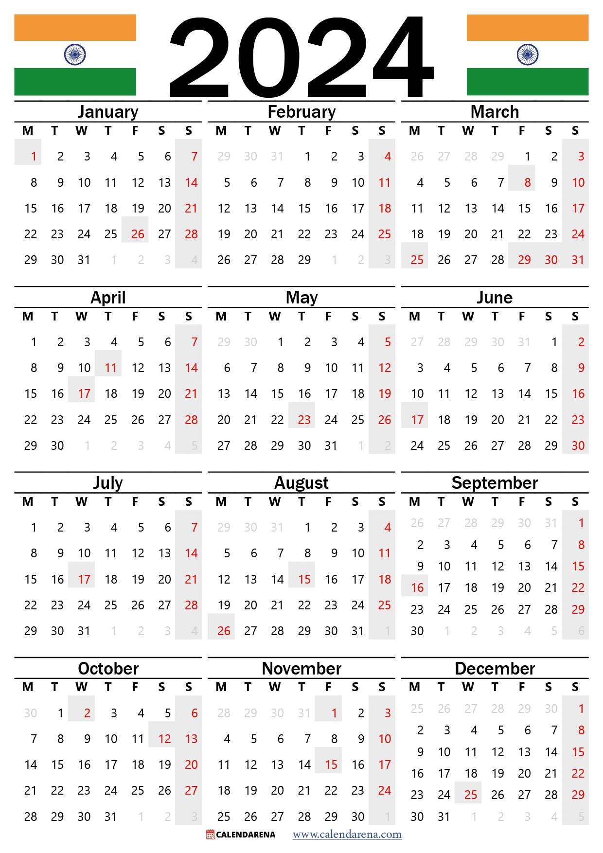 Having holidays marked on your calendar can give you a heads up on when you can expect time off work or when your kids have a school break. It helps you plan your year in advance and ensures you make the most of your time off.