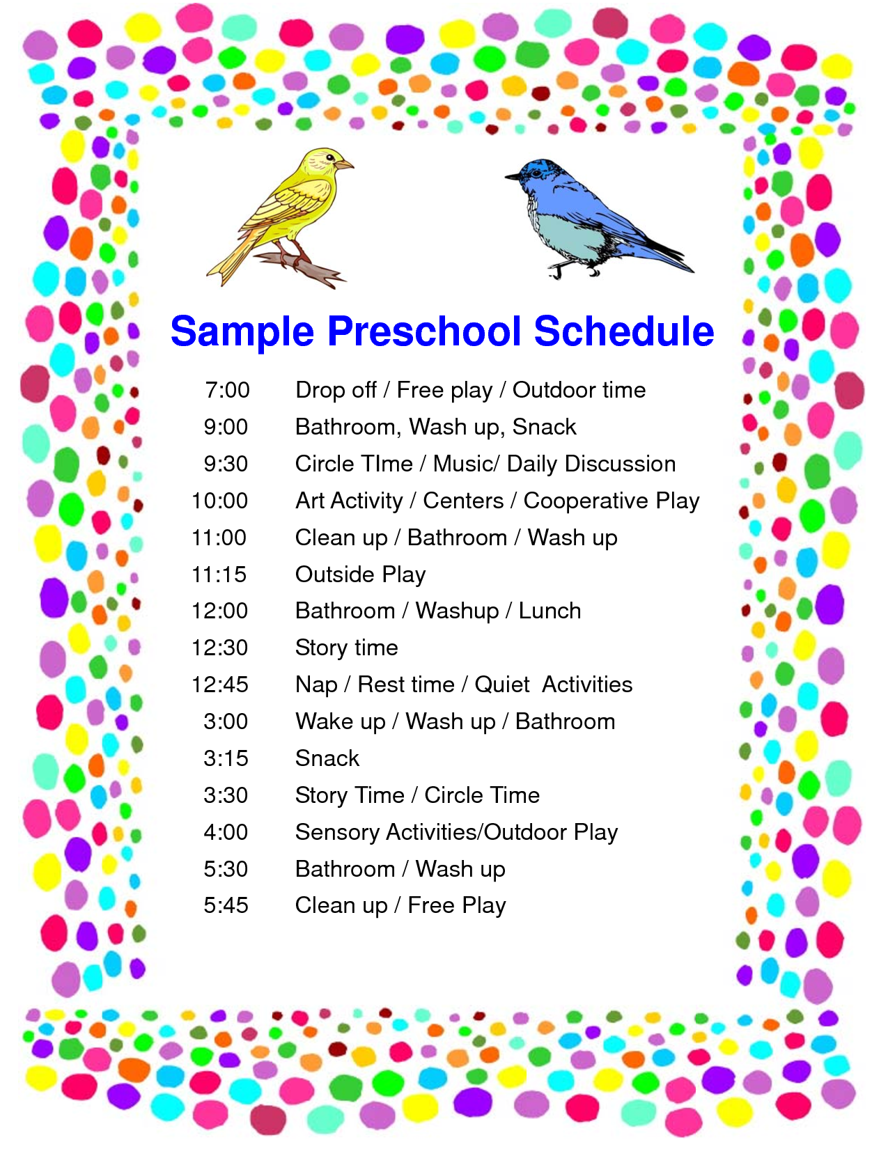 Download and Print Preschool Printable Blank Template Curriculum Daily Schedule Listed below