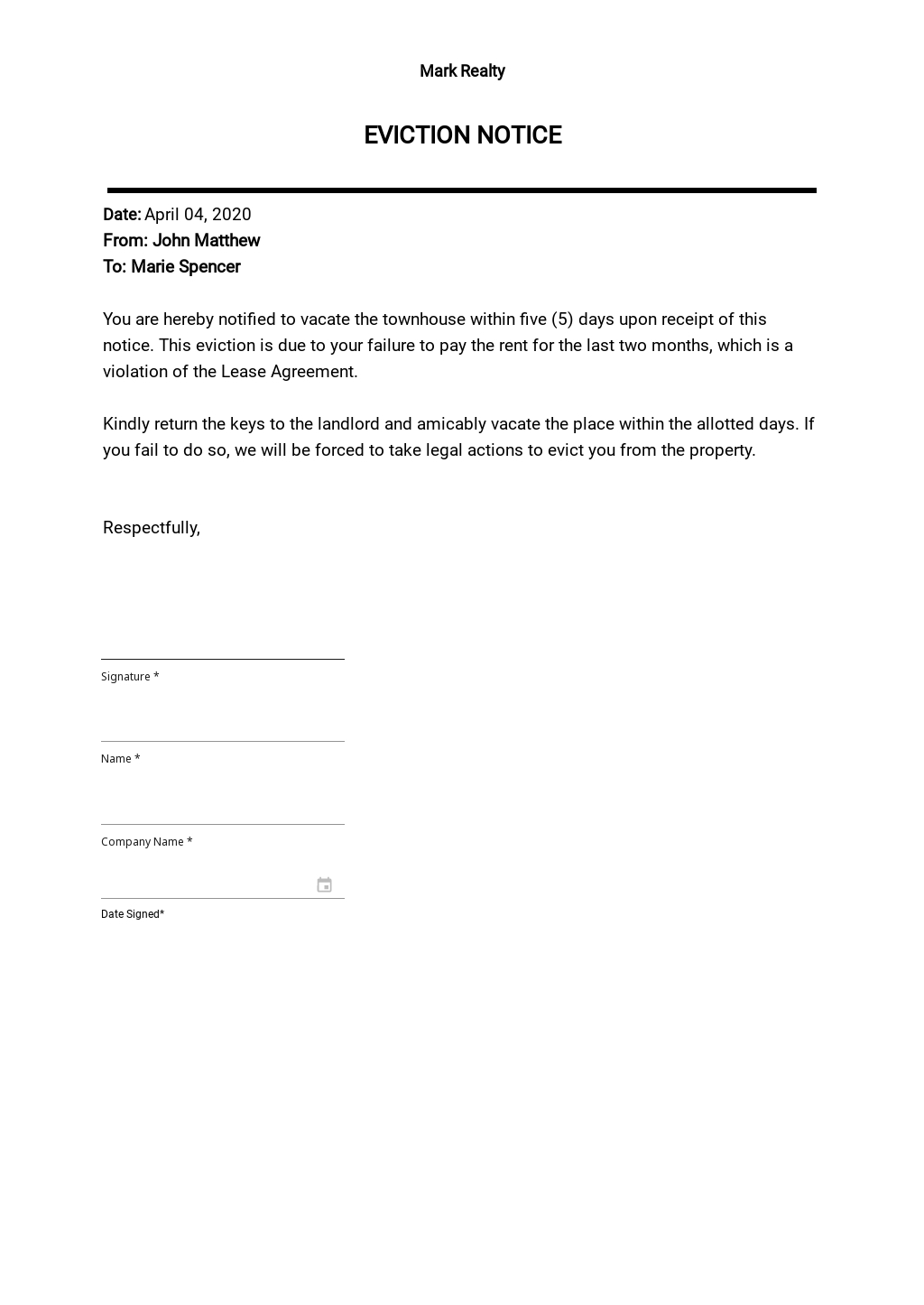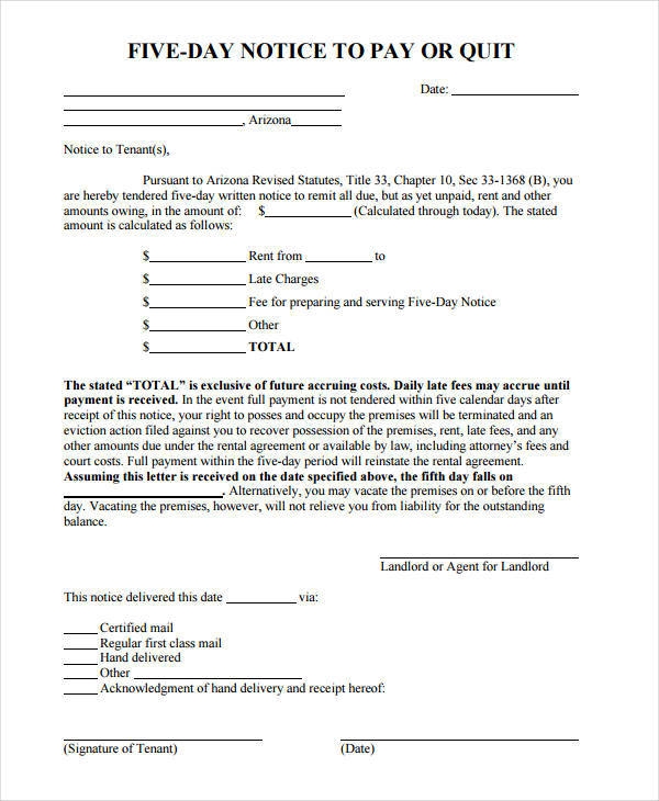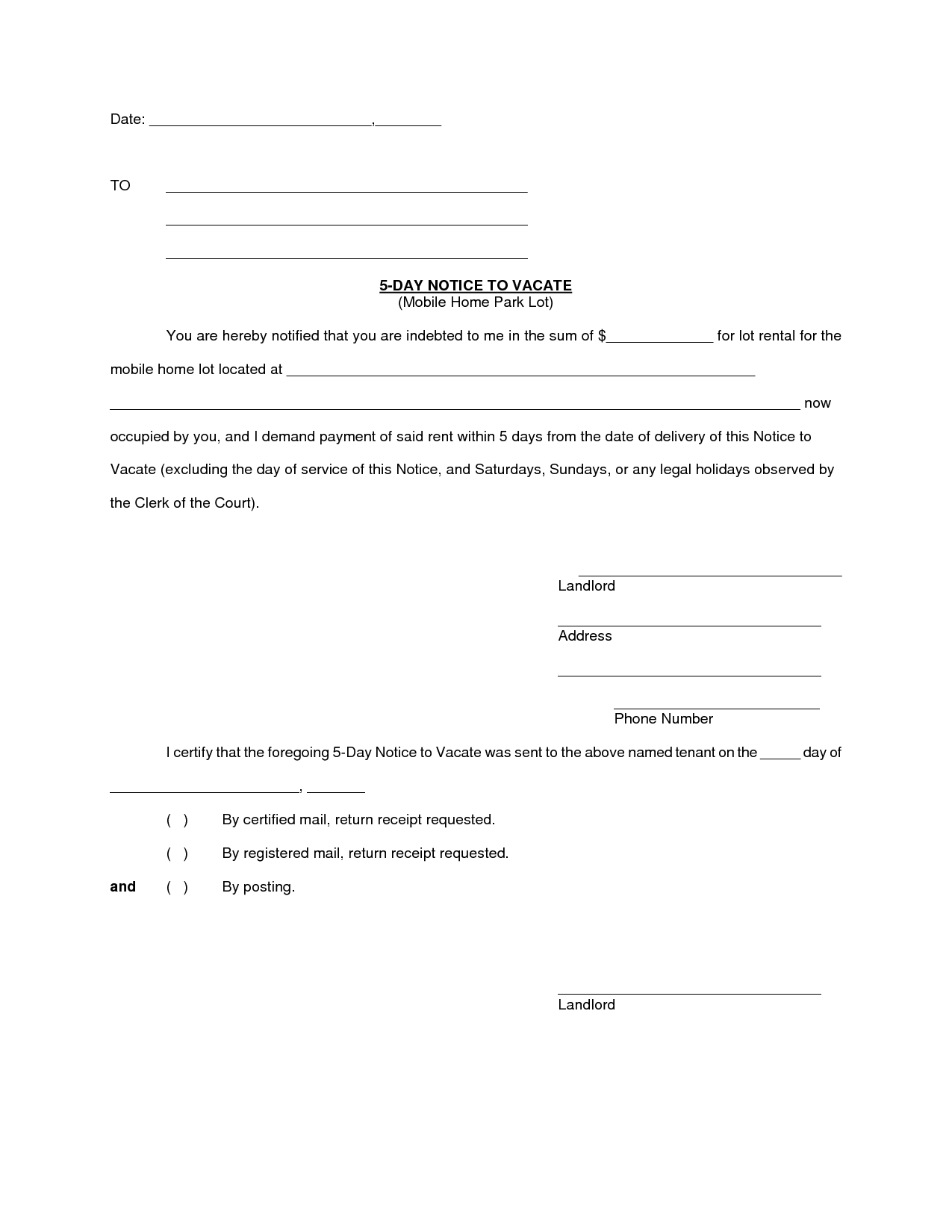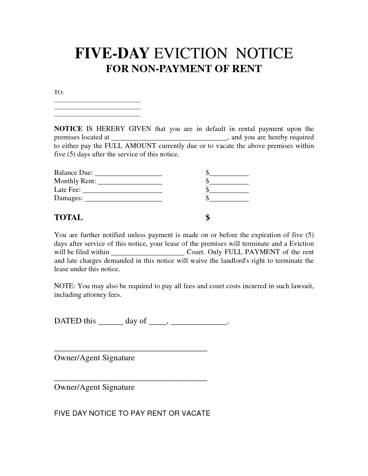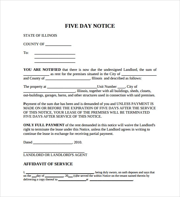 Download and Print Printable Blank 5 Day Eviction Notice Listed below