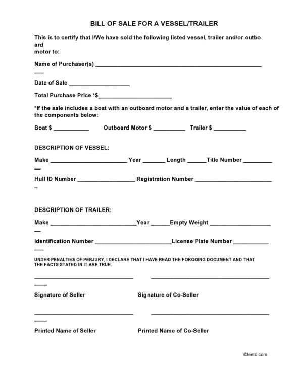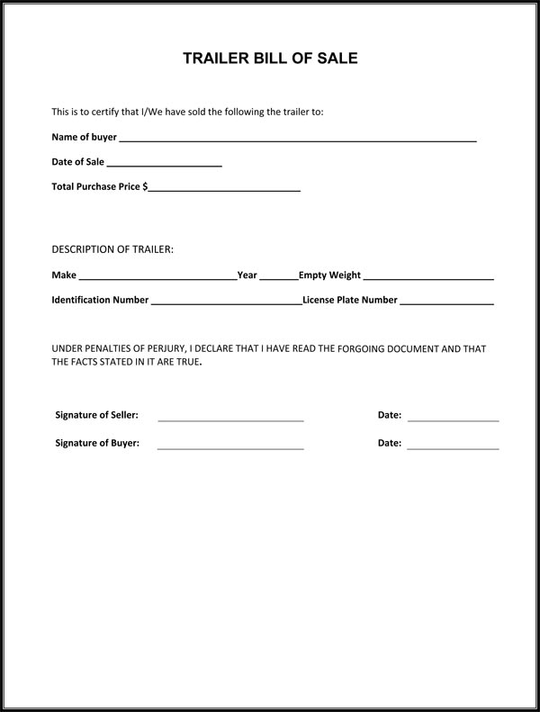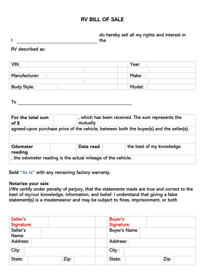 Printable Blank Bill Of Sale For Motorhome
