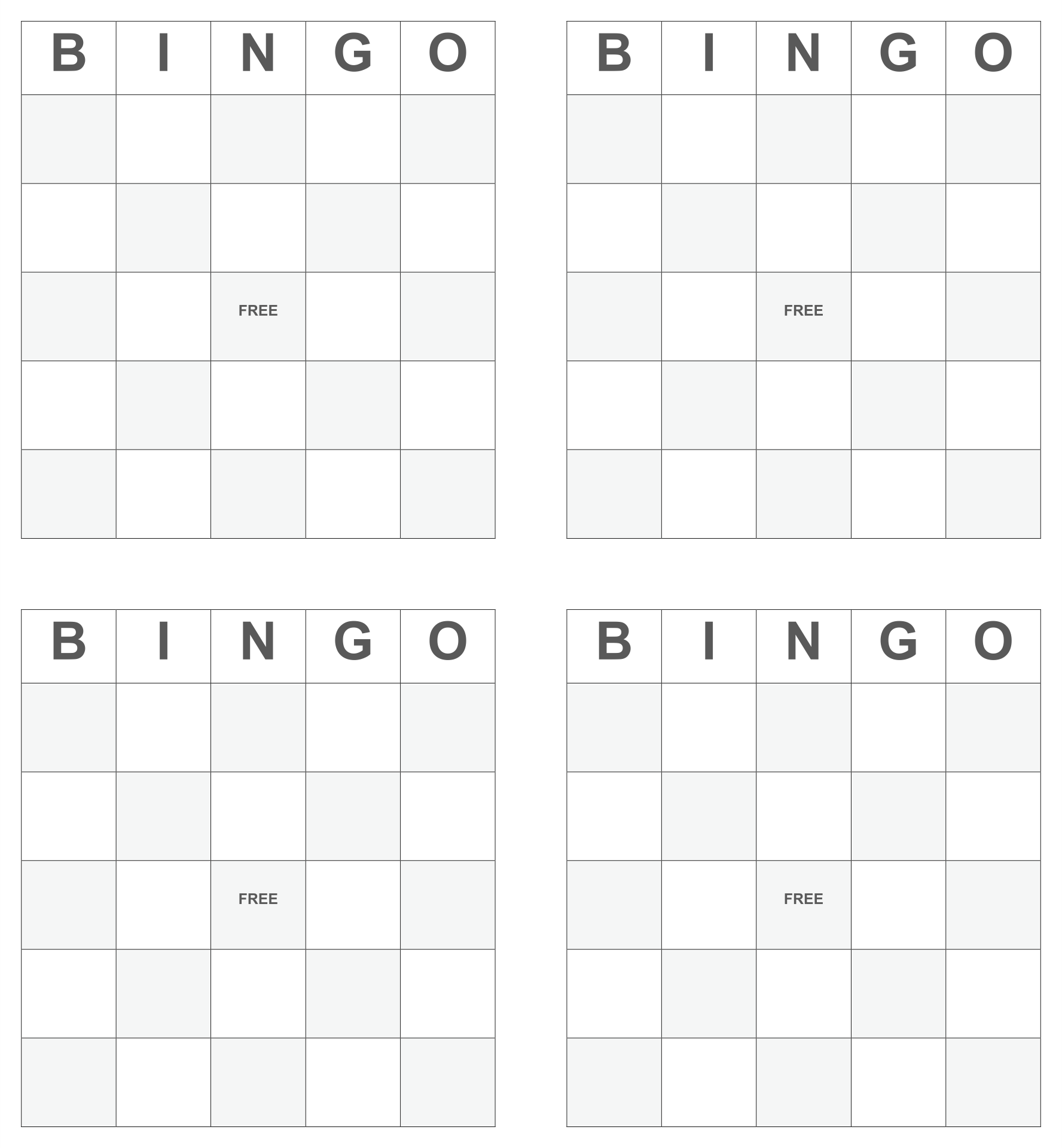 Download and Print Printable Blank Bingo Cards 4 Per Page Listed below