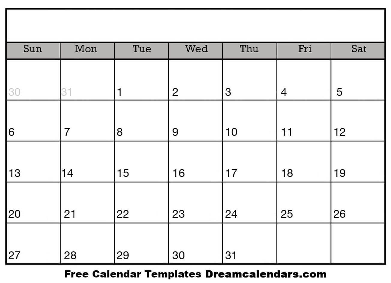 Download and Print Printable Blank Calendar With No Numbers Listed below