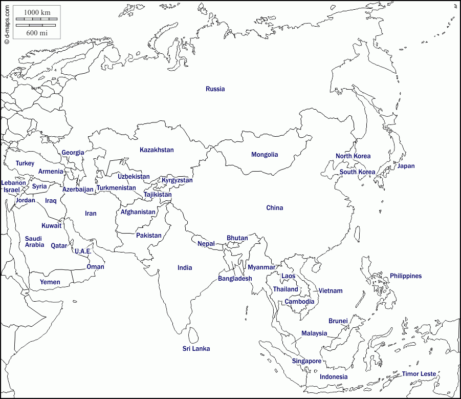 Download and Print Printable Blank Map Of Asia With Countries Listed below
