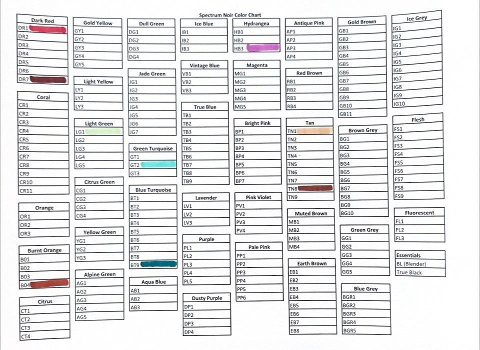 Download and Print Printable Blank Printable Spectrum Noir Color Chart Listed below