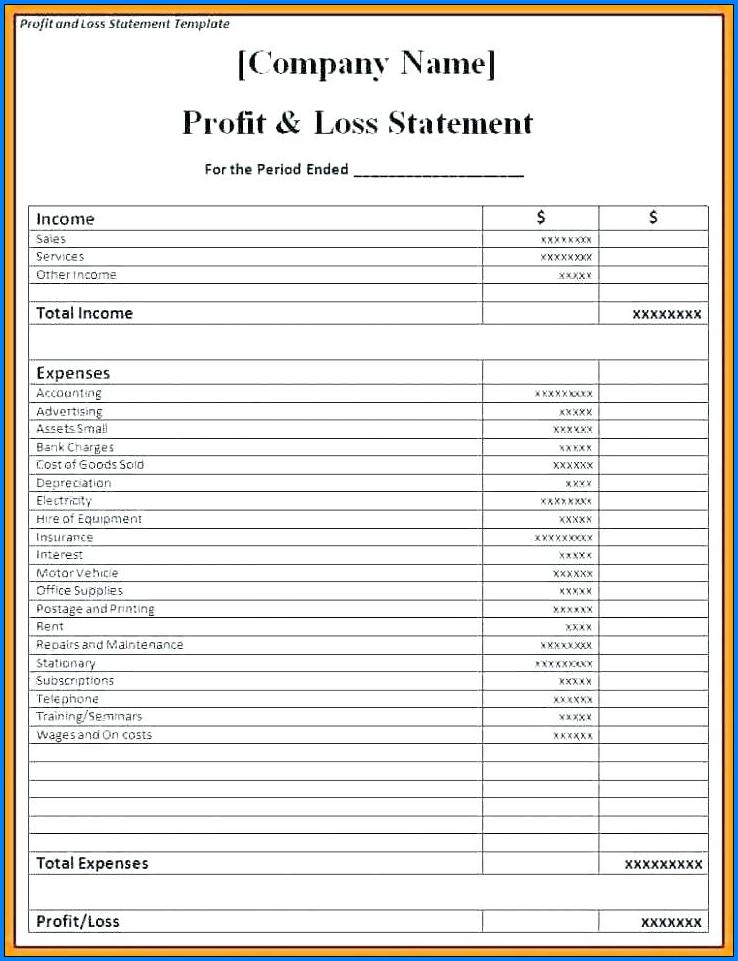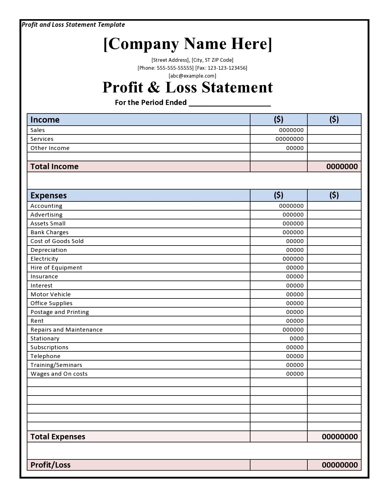 Download and Print Printable Blank Profit And Loss Form Listed below