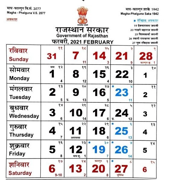 Printable Calendar 2025 Rajasthan Government