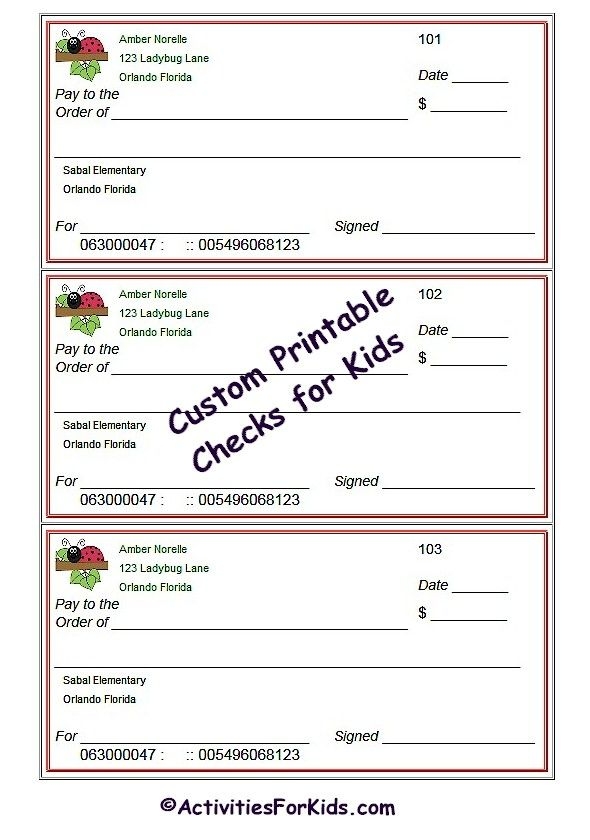 Download and Print Printable Examples Of Blank Checks For Kids Listed below