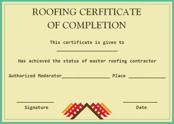 Download and Print Printable Roofing Certificate Of Completion Template Listed below