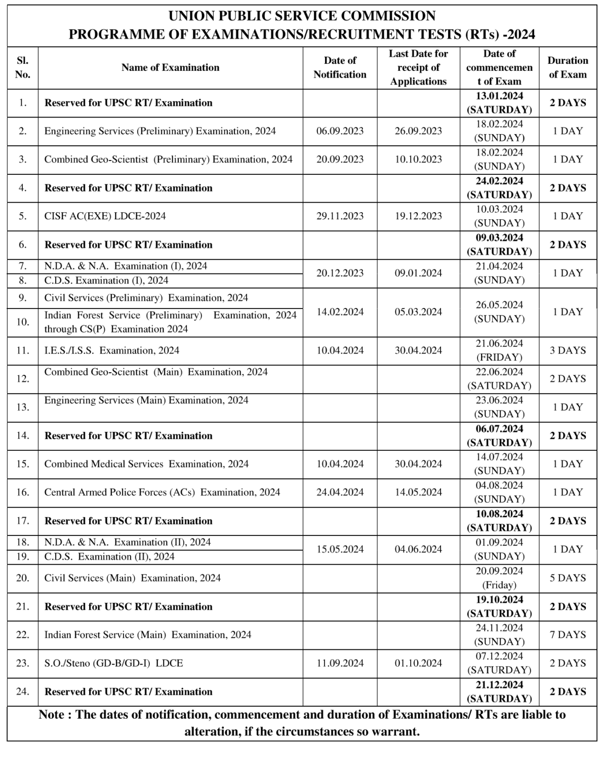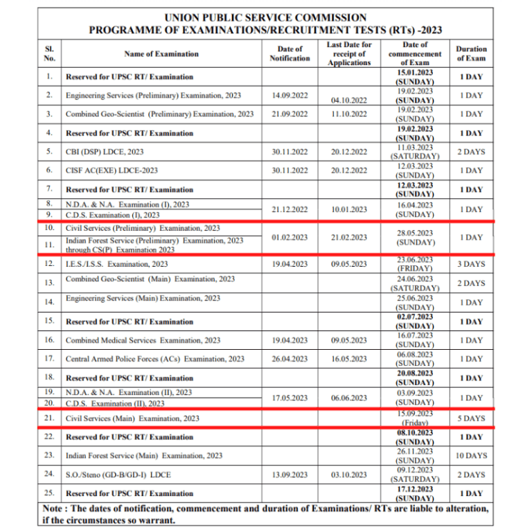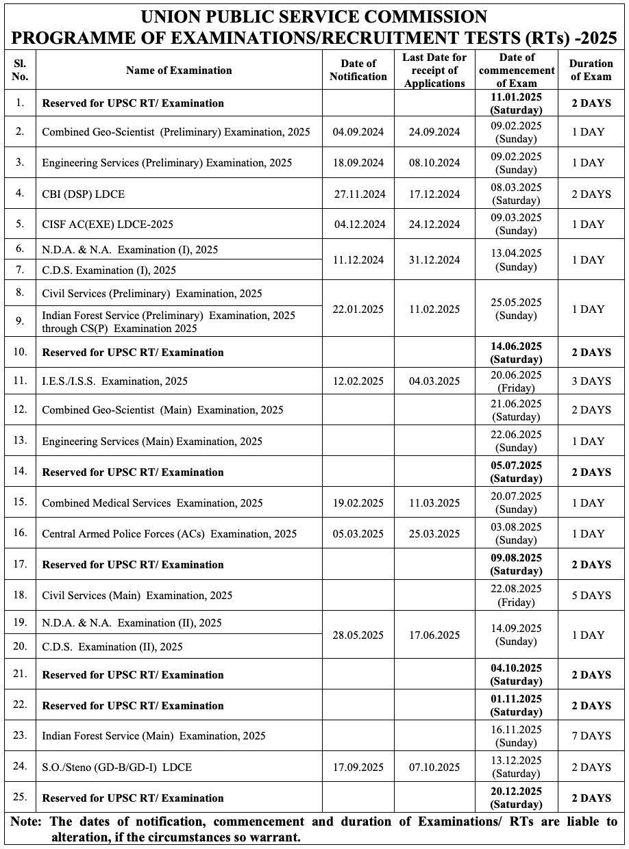 Download and Print Upsc Calendar 2025 Exam Date Listed below
