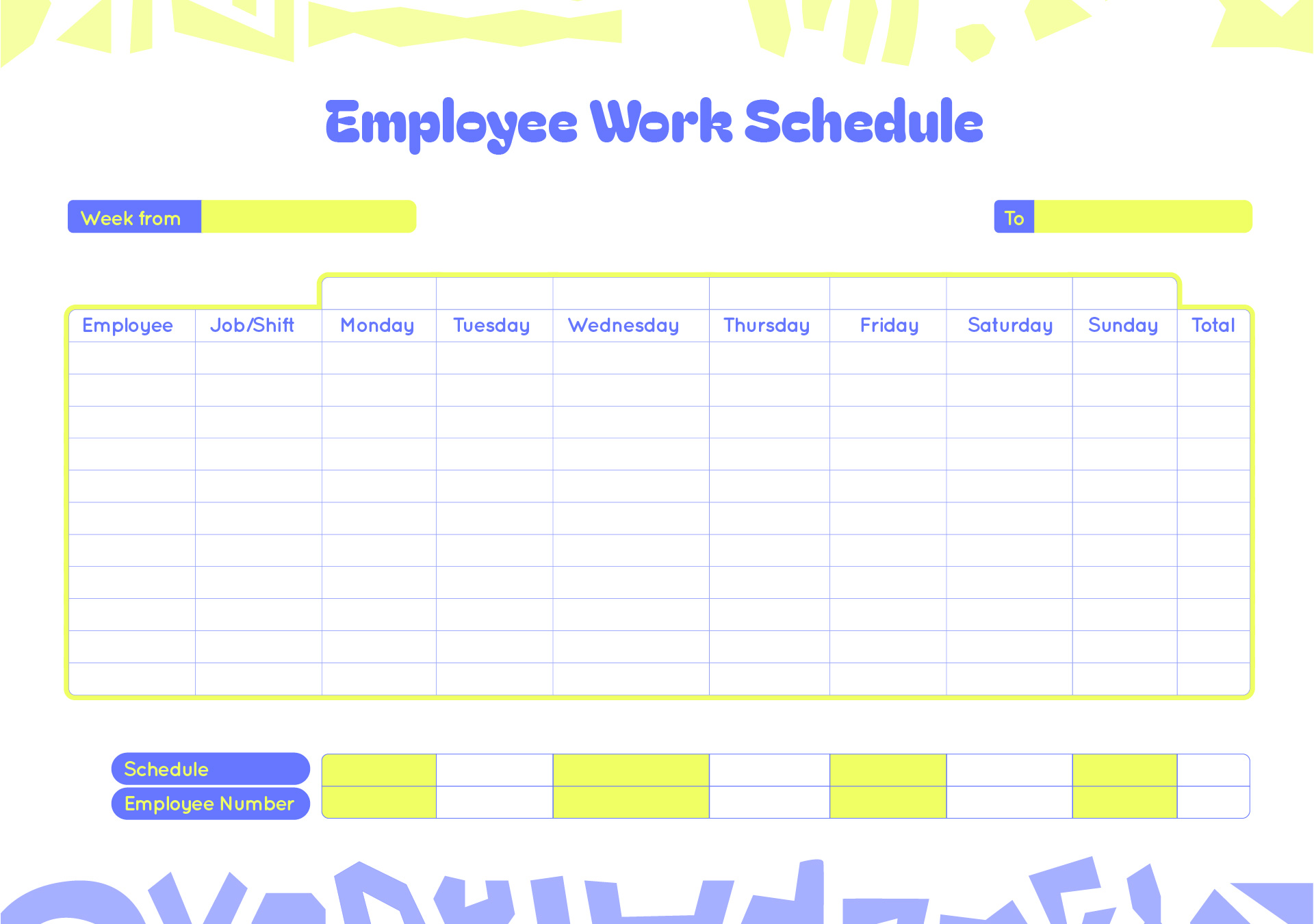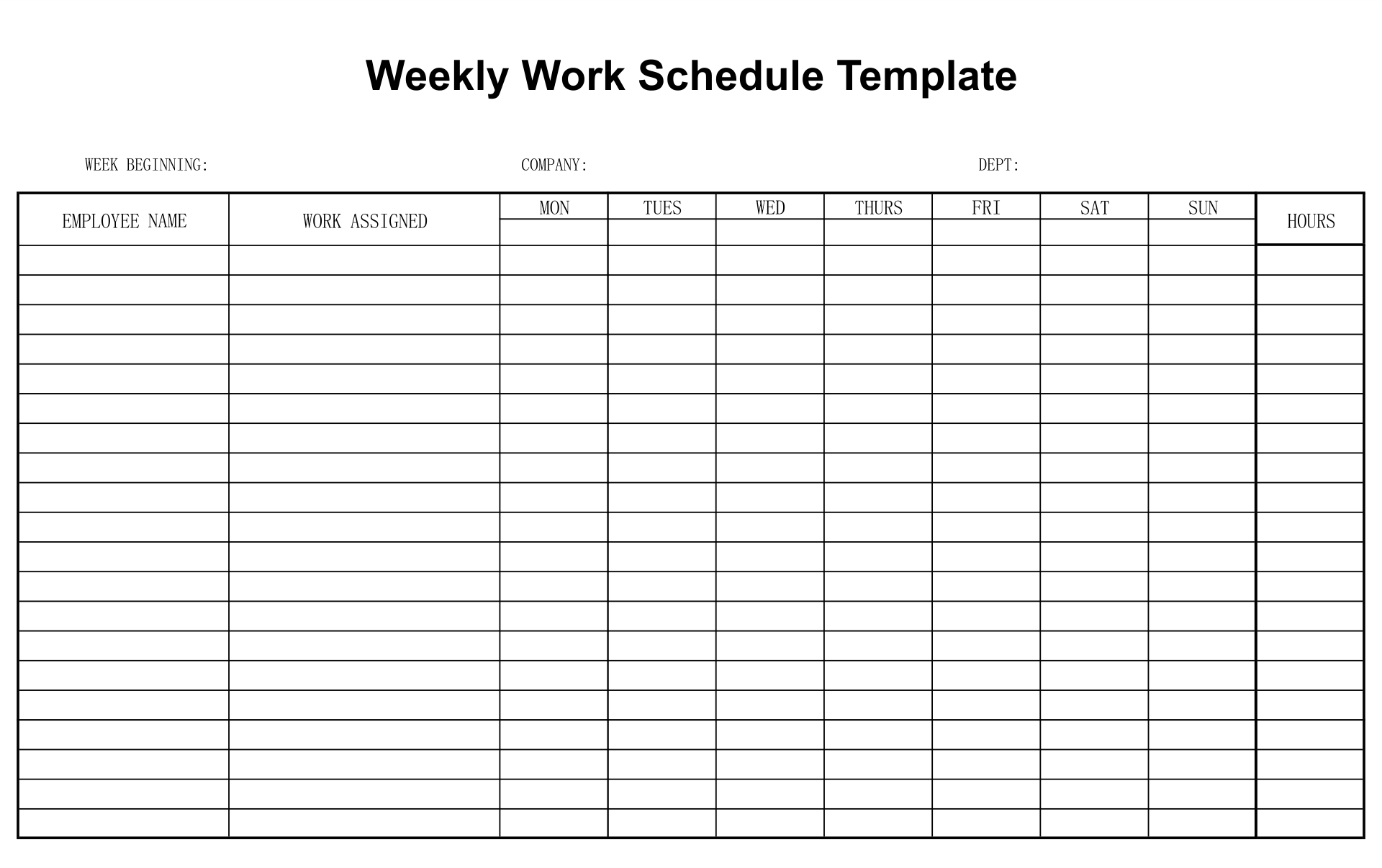 Download and Print Weekly Work Schedule Blank Form Printable Listed below